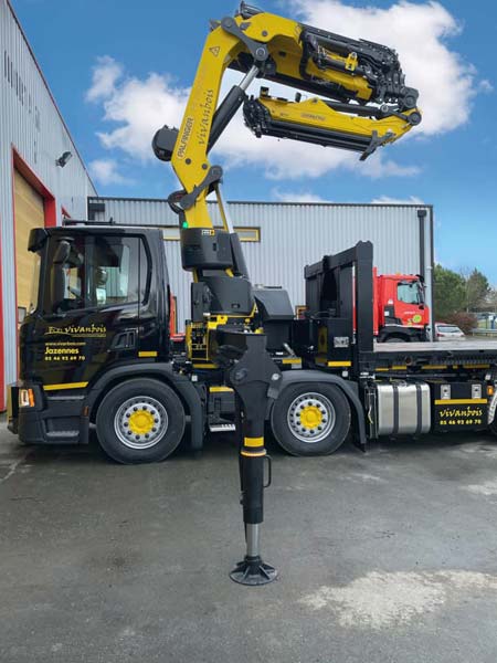 L’entreprise vient de faire l’acquisition d’un tout nouveau camion grue Scania P410 8×4 HB équipé d’une grue Palfinger PK 53002-SH de 29m pour poser les panneaux quelques soit la configuration et la difficulté de votre chantier.