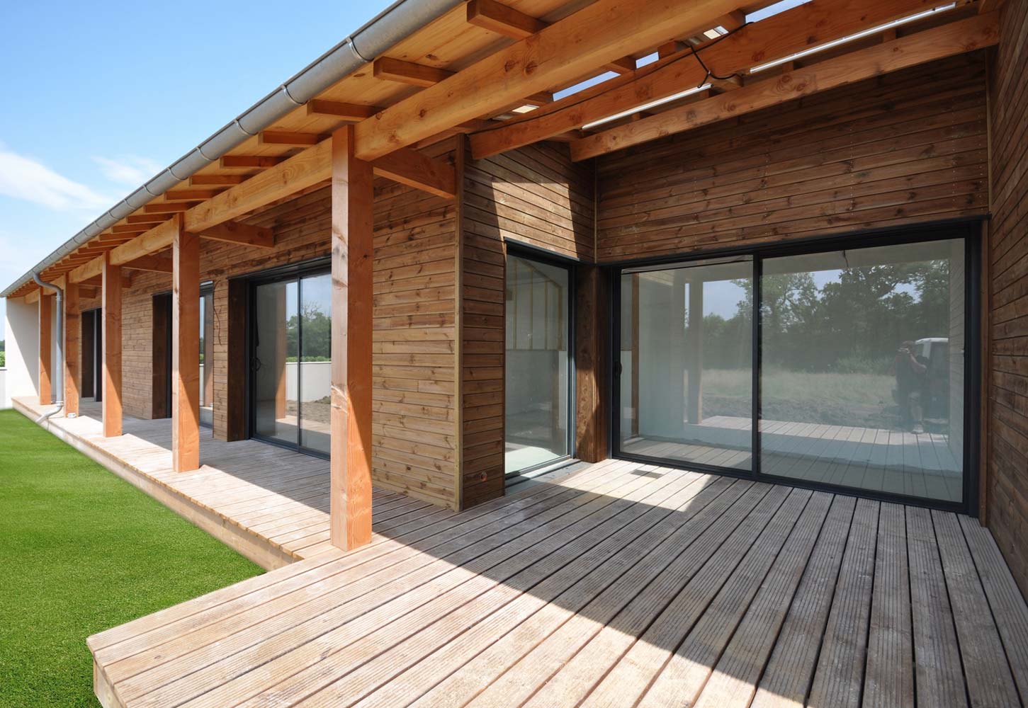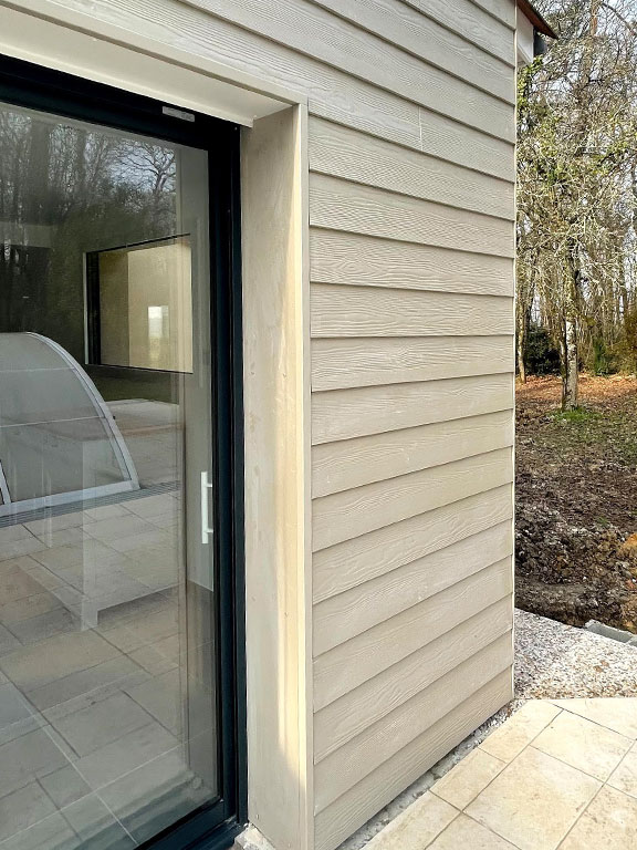 Vous pouvez aussi opter pour un bardage composite teinté dans la masse qui a l’avantage de demander moins d’entretien.